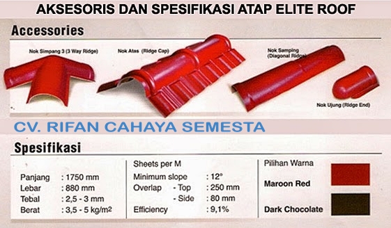 CV. RIFAN CAHAYA SEMESTA adalah Perusahaan supplier bahan bangunan & general trading produk Atap Elite Roof kami melayani penjualan ke seluruh wilayah Indonesia.